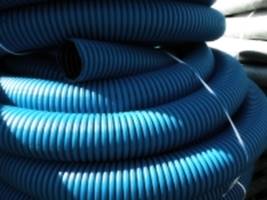 - Двухслойные гофрированные трубы для защиты кабелей выпускаются двух цветов: красные - для электрических кабелей, синие - для систем связи и телекоммуникаций.