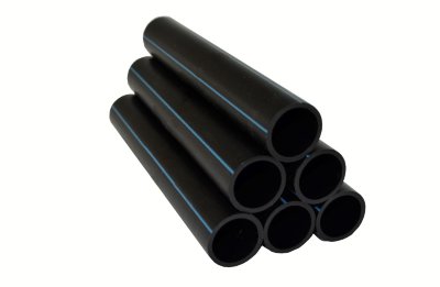 Трубы для подачи воды из ПНД черного цвета с синими продольными полосами. Такой яркий окрас позволяет быстро обнаружить водопроводные трубы среди всего многообразия ПЭ изделий.
